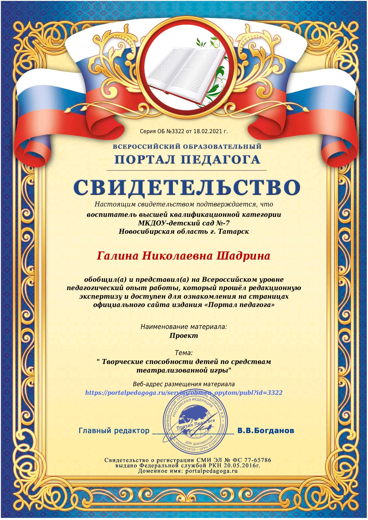 Свидетельство Обобщение на всероссийском уровне педагогический опыт работы
